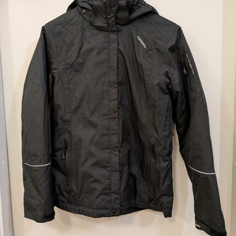 Tummansininen Icepeak laskettelutakki, koko 42. Hihatasku + muita taskuja, lumipussi helmassa. Hyvä takki suoraan käytöstä, jäi pieneksi. 😊