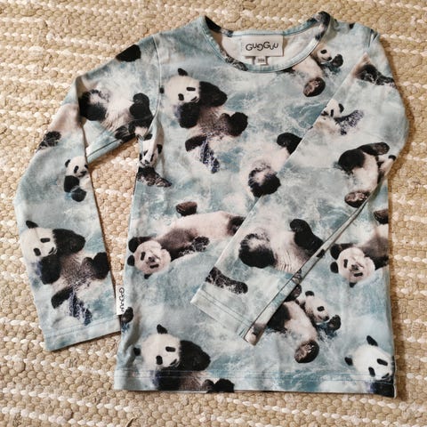 Gugguu kultapanda paita koko 104 mutta pientä kokoa ja vastaa enemmän 98 kokoa. hyväkuntoinen, ei juuri ehditty käyttää kun meni koko ohi.