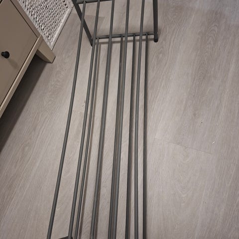 Hyväkuntoinen kenkäteline, hieman hutera. Nouto Joensuun keskustasta.