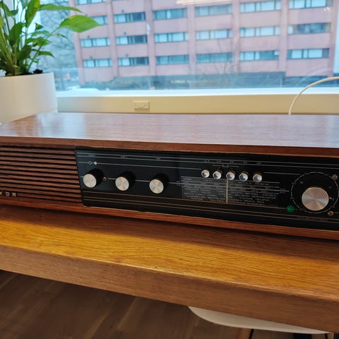 Nätti punainen Luxor Selectomat matkaradio.