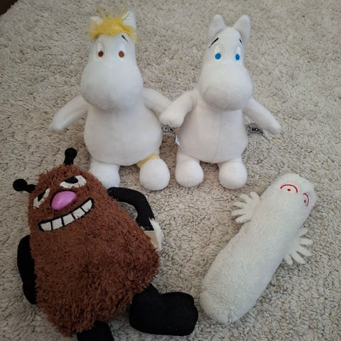 Uutena ostetut, vähäisellä käytöllä olleet Muumipappa ja Niiskuneiti pehmolelut. Kunnossa ei mitään mainittavaa, pesty uusille leikkijöille.