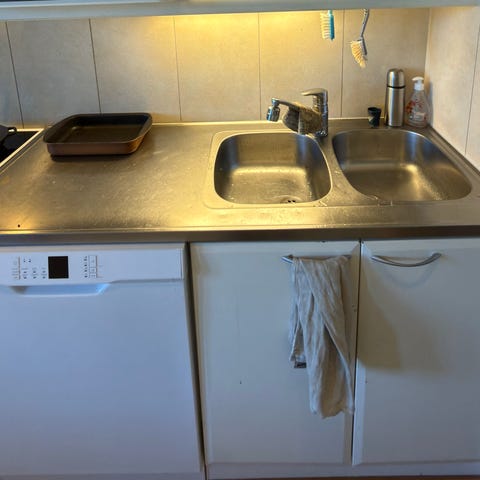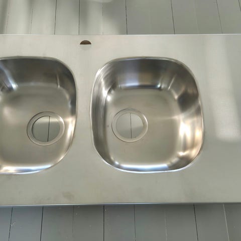 Myydään tiskipöytä jossa kaksi allasta. Mukana myös viemäriliitännät. Leveys n.77cm ja syvyys noin 45cm.