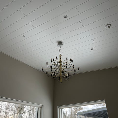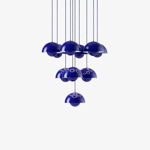 Flos 2097/18 messinki kattokruunu led lampuilla.