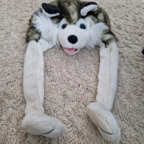 Husky aiheinen karvahattu. Valkoinen fleecevuori.
