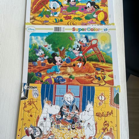 Kolme pientä palapeliä (3 palaa, 4 palaa ja 6 palaa). Reunat vähän kuluneet. Vain nouto.