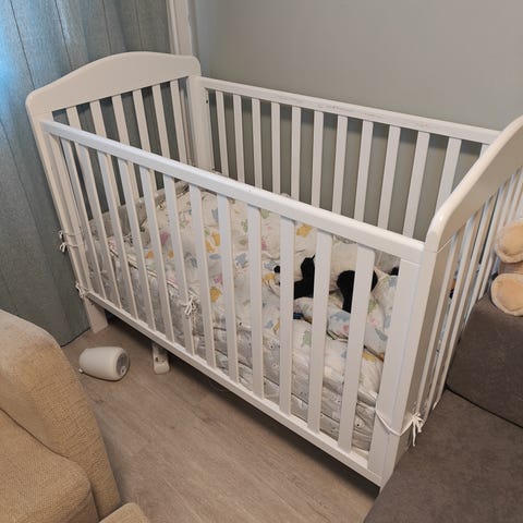 Vihreä puinen pinnasänky vauvalle/taaperolle. Vain nouto.
