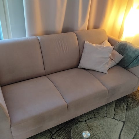 3-istuttava vaalean harmaa sohva Sotkasta, käytetty 2 vuotta. Divaani/vuodesohva