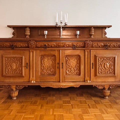 Barokki senkki ja ruokapöytä sekä 4tuolia nyt ylimääräisenä , ruokapöytä on jatkettavissa . Kunto hyvät ja siistit. Itse noutaen ja kantaen , kolmas kerros eikä hissiä. Tuotteet Raholassa.