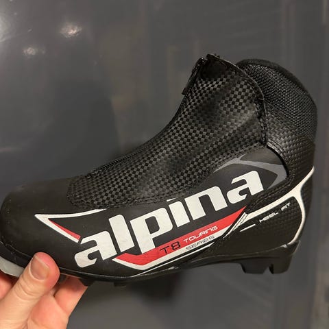 Hyväkuntoiset juniori hiihtomonot Alpina Racing combi, eli sopii sekä luistelu että perinteiseen hiihtoon, NNN siteelle.
