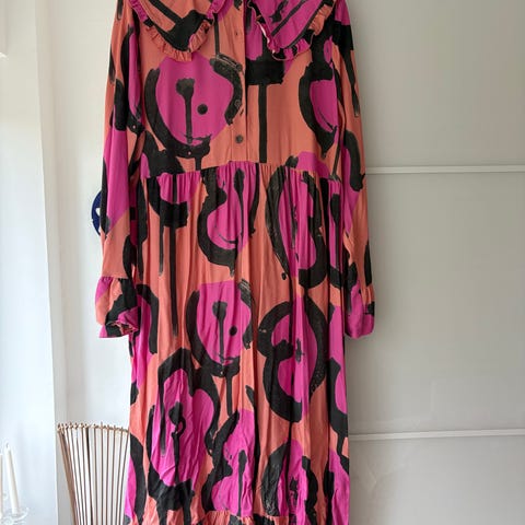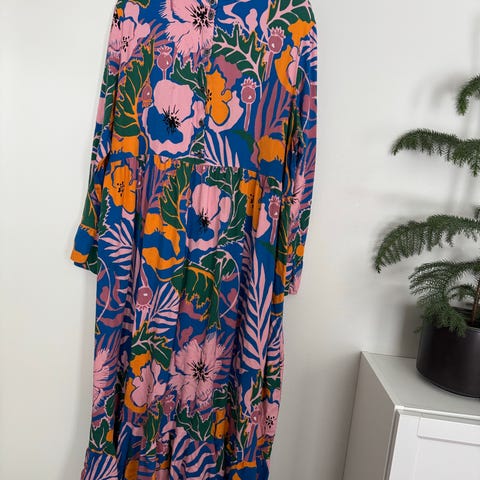 Vimma arkimekko naisille, koko XXL. Materiaalina viskoosi. Edessä on napitus yläosassa ja pitkät hihat, joissa on kevyt rypytys hihansuussa. Helmassa on röyhelö. Malli on väljä ja laskeutuva, sopii arkipukeutumiseen ja kerrostettavaksi eri vuodenaikoina.
