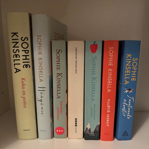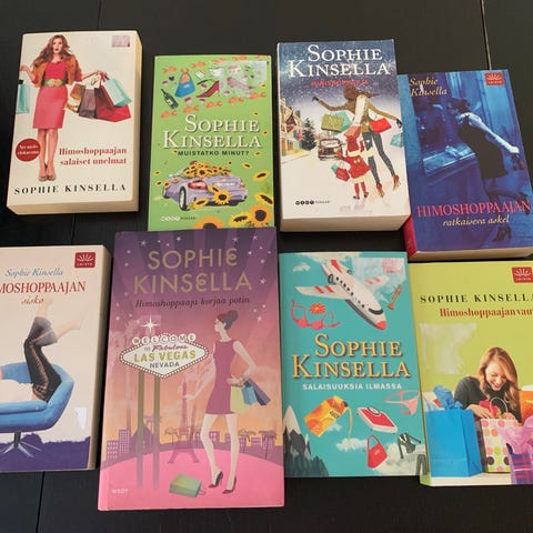Sophie Kinsellan Himoshoppaaja sarjan kirjoja 8 kpl. Pokkarit luetumman näköisiä, kovakantiset uudemmat tosi siistejä.