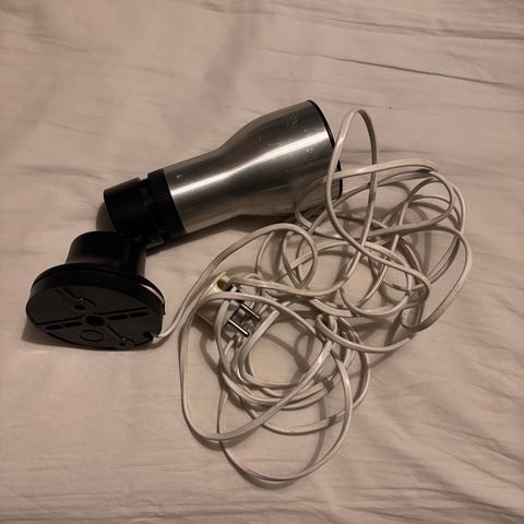 Spottivalaisin sopii hyvin kohde-tai työvaloksi tai kukkavaloksi. Lampun maksimi tehoksi suositus 60 w. Soitin pinnassa on pieniä naarmuja jotka läheltä katsottuna näkyvät selvästi. Kauempaa katsottuna eivät häiritse, johdossa ei ole kytkintä JS siinä on pieni kohta joka ollut ilmeisesti lähellä jtkn kuumaa, ( ks viimeinen kuva) johto kuitenkin ehjä.