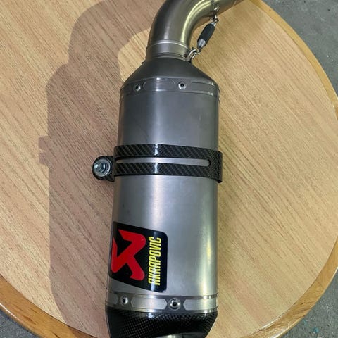 Aito lyhennetty hiilikuituinen Akrapovic äänenvaimennin. Vaimentimrn pituus 30cm koko pituus 45cm. Liitoksen halkaisia 55mm.
