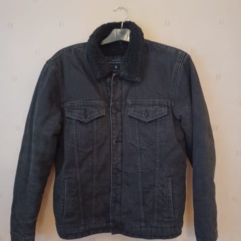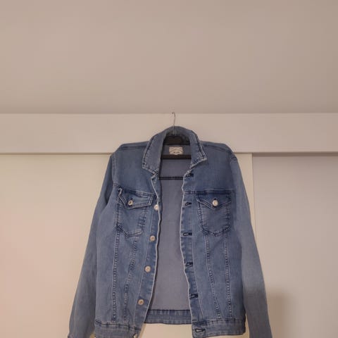 Hyväkuntoinen farkkutakki jossa pitkät hihat.