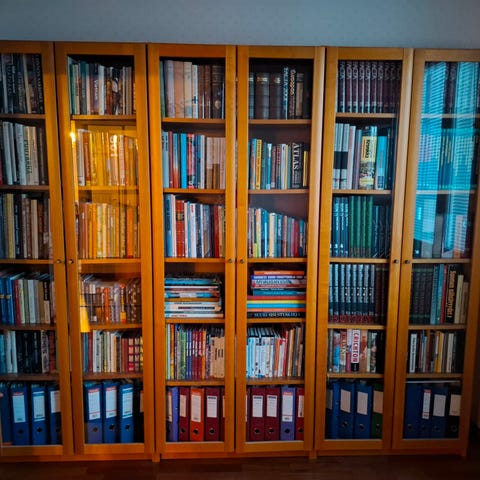 Kirjahylly/ kaappi +neljä eri kokoista laatikkoa. Ylimmän saa lukittua.