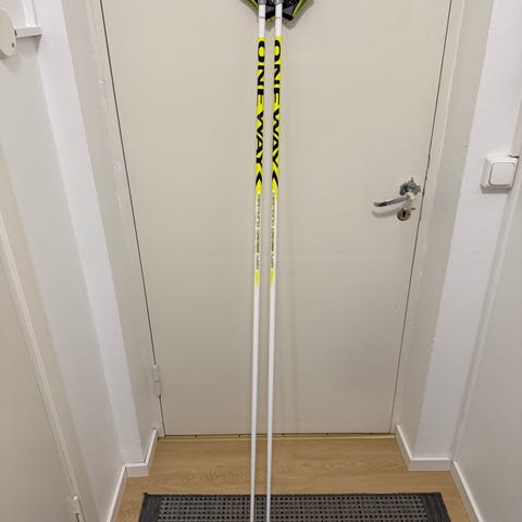 Hyvä kuntoiset ja kevyet hiilikuitusauvat vapaan tyylin hiihtoon. Sopii 180-185cm pituiselle hiihtäjälle. Remmit kuluneet, mutta täysin toimivat.