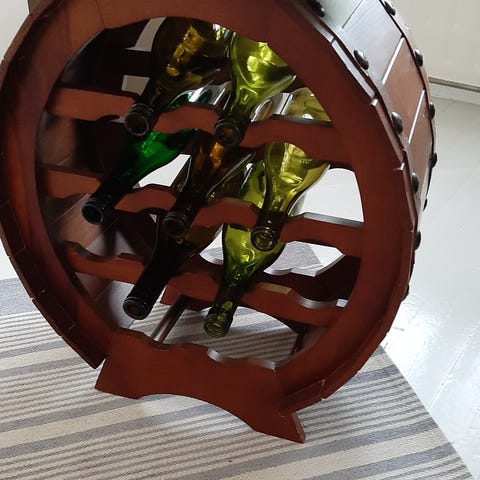 Myydään valkoiseksi maalattu viinipulloteline,korkeus 160cm,leveys 12cm,syvyys 12cm.
