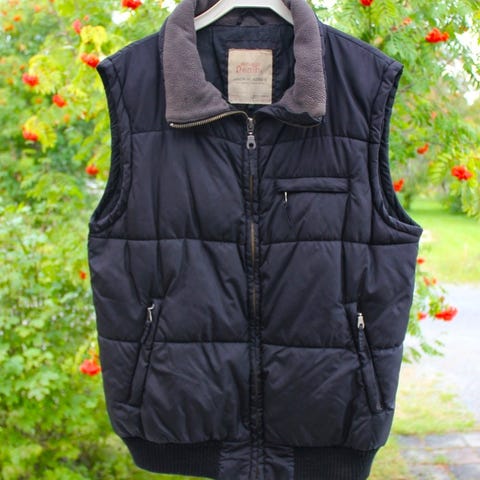 Jack & Jones toppavaliivi miehille, koko S. Musta, kevyesti topattu liivi, jossa vaakasuorat tikkaukset ja vetoketjukiinnitys edessä. Sopii käytettäväksi sellaisenaan tai kerrospukeutumiseen esimerkiksi takin tai hupparin kanssa. Materiaalina untuva, joka tuo lisälämpöä viileämpiin säihin. Viili on hyvä kuntoinen ja vähälle käytölle jäänyt.