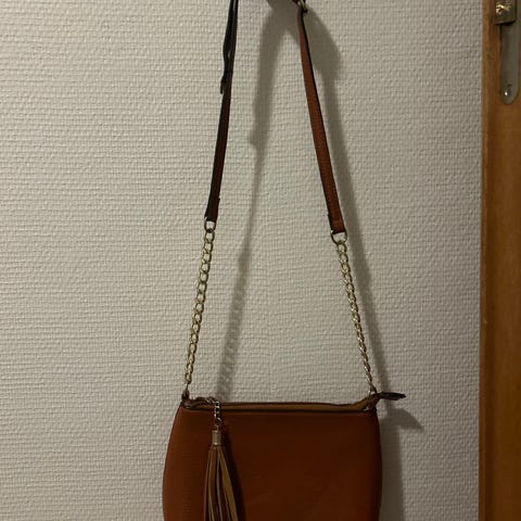 Leveys 30cm, korkeus 20cm. Hihnojen pituus n. 66cm. Takana vetoketjutasku 20cm. Sisällä keskellä väliseinä ja vetoketjutasku. Vuorissa teksti The Monte. Mielstäni laukku on nahkaa, mutta en ole varma.