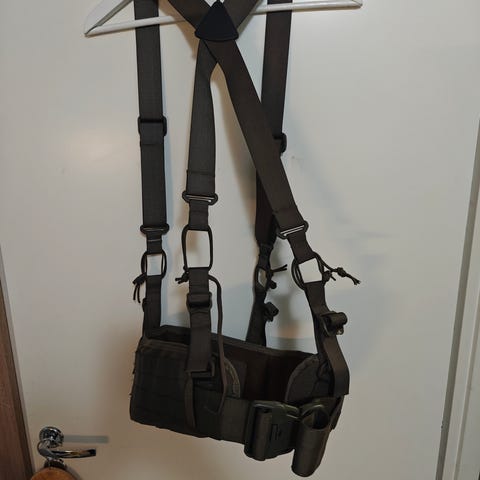 Invader Gear ja Tasmanian Tiger aseen kantohihnasetti. Useita erilaisia mustia ja vihreitä kantohihnoja, joissa on säädettävä pituus ja erilaisia kiinnityslenkkejä ja -koukkuja. Hihnat soveltuvat aseen tai muun varusteen kantamiseen ja kiinnittämiseen. Materiaalina on kestävä nauha, jossa on muovi- ja metalliosia kiinnitystä ja säätöä varten.