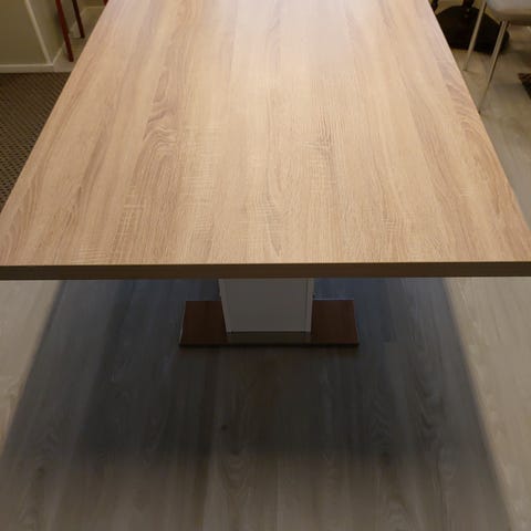 Vaalea ruokapöytä 50cm jatkopalalla ja 6:lla pehmustetulla tuolilla. Ainoastaan nouto sopimuksen mukaan.