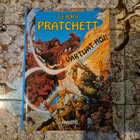 Myyn Terry Pratchettin kovakantisen kirjan Vartiosto valmiina palvelukseen. Kirja on muovitettu kirjastopoisto, mutta kirjastopoistoksi siistissä kunnossa.