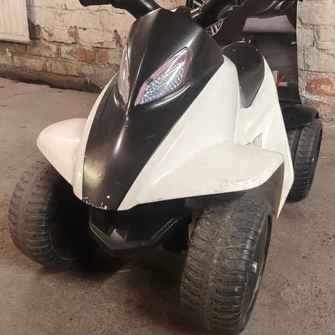 Sähköinen mönkijä on nelipyöräinen, vihreä lasten ajoneuvo. Leveät muovirenkaat, ohjaustanko ja istuin yhdelle lapselle. Lelu toimii sähköllä ja sen mukana tulee laturi. Soveltuu pienten lasten ajo- ja leikkikäyttöön sisä- tai tasaisille ulkoalustoille. Käytön jälkiä ja akun kesto ei enää uuden veroinen. Laturi mukana.