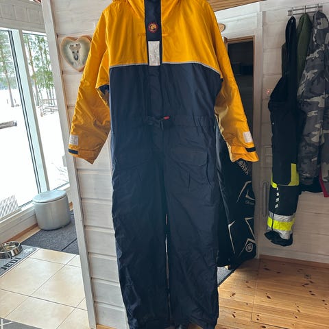 Turvallinen CE-merkitty kelluntapuku pilkkimiseen, veneilyyn ja muuhun vesillä liikkumiseen kylmissä olosuhteissa.