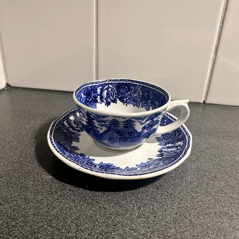 Arabia sininen maisema 2 kahvikuppia, 1 tassi