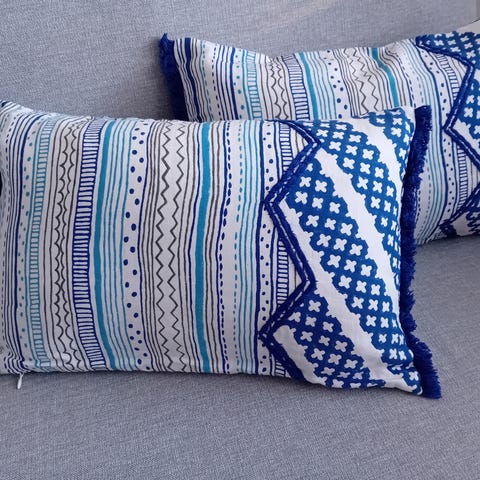 Siniset puuvillaiset sisustustyynynpäälliset savuttomasta ja kotieläimettömästä kodista. Parin hinta 10e. Postitettavissa kirjekokoisessa pahvipakkauksessa 5.5 eurolla. Myös nouto tai Toridiili käy.