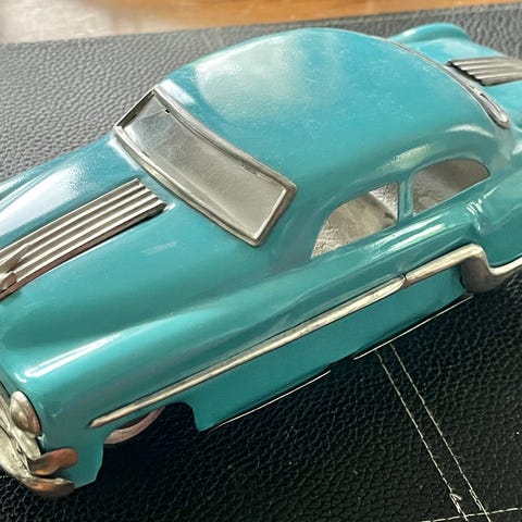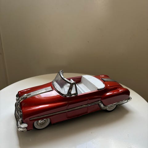 Hieno Pontiac peltiauto. Ei osapuutteita, maalipinta hyvä, kromiosat tummuneet/patinoituneet. Frictio toimii. Pituus n. 25cm.