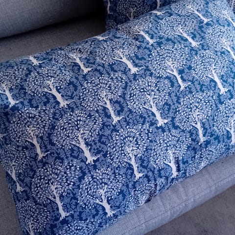 Raikkaan sinivalkoiset tyynynpäälliset. Savuton ja kotieläimetön talous. Parin hinta 10e. Postitettavissa pahvikotelossa kirjeenä 5.5 eurolla. Nouto tai Toridiili onnistuu myös.