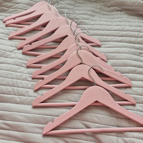 "Näiden henkareiden ansiosta lapsen vaatteet on helppo järjestää ja löytää. Henkarit on mitoitettu lasten vaatteille ja valmistettu massiivipuusta."