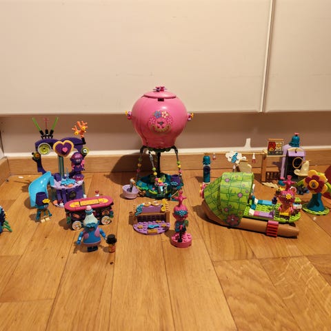 Myydään Trolls-lego. Harja, lasso, vaahtokarkkikeppi ja varasa vielä etsinnässä. Muut osat tallessa.