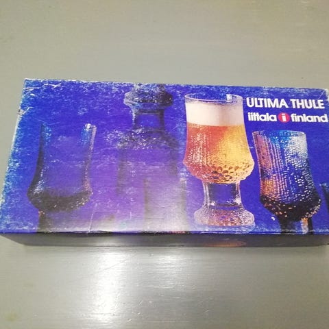 Tapio Wirkkalan Iittalalle suunnittelemia Ultima Thule -sarjan laseja koossa 8x9cm.