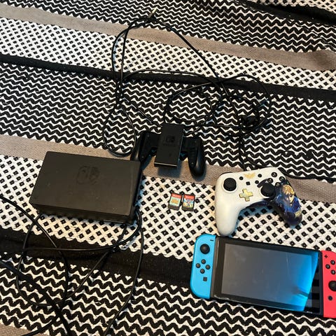 Nintendo switch V2, konsoli on hyvässä kunnossa, näyttö on naarmuton ja siinä on suojalasi, mukaan tulee vielä yksi lisä suojalasi, joyconit toimivat myös täydellisesti, mukaan kaikki kuvissa näkyvät laitteet, sekä kolme kuvissa näkyvää peliä.