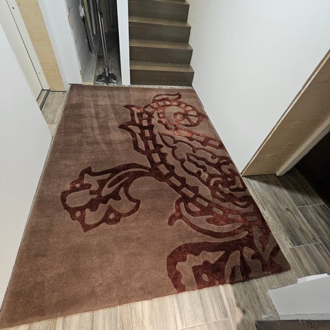 Matto on lumipesty ja imuroitu. Lisää mattojen lumipesusta voit lukea esimerkiksi Marttojen sivuilta: https://www.martat.fi/blogit/mattojen-lumipesu/