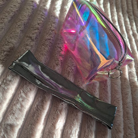 Retro/vintage toilettilaukku, meikkikassi, sateenkaari pussukka. Pride. Kangas pussi, kangas laukku. Toilettilaukku. Meikki pussi.