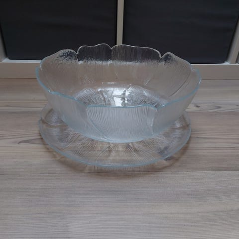 Luminarc / Arcoroc Fleur lasinen tarjoilukulho ja tarjoilulautanen