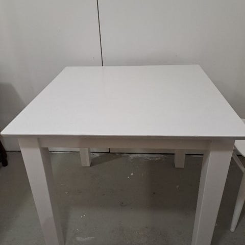 Myydään pienehkö valkoinen pöytä ja 3 tuolia pois uudemman tieltä. Käytön jälkiä ja kulumaa löytyy. Vain haku.