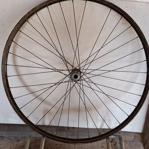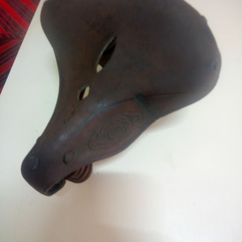 Vanha polkupyörän satula putkella. Ruskea nahkasatula.