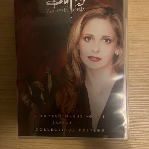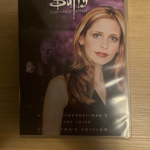 Buffy vampyyrintappaja kausi 7 jaksot 13–22 dvd collectors edition. Kokoelman eka levyn pidike hajonnut, josta johtuen levy liikkunut kotelossa vapaana ja naarmuntunut. Tästä syystä kunnoksi laitettu kohtuullinen ja tämä huomioitu hinnassa.