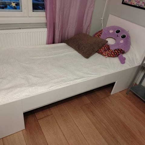 2. kuvassa näkyy sänky käytössä. Tästä näkyvää, ulos tulevaa lavaa on sittemmin lyhennetty 200cm patjan mittaiseksi - tästä ei valitettavasti kuvaa.