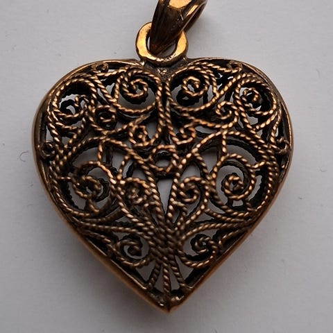 Pronssinen sydänriipus ketjulla