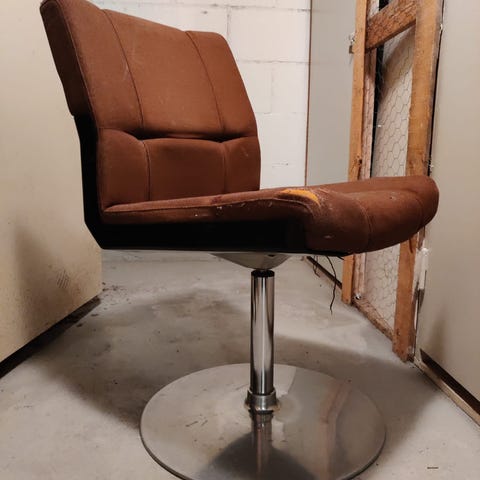 Tästä ilmaiseksi noudettuna nojatuoli jossa on hyvä istua mutta kissa on repinyt kankaan joka kulmasta rikki joten vaatisi uutta päällistä. Lähtee parin viikon päästä sorttiasemalle kierrätykseen jos ei tätä kautta kenellekään kelpaa.