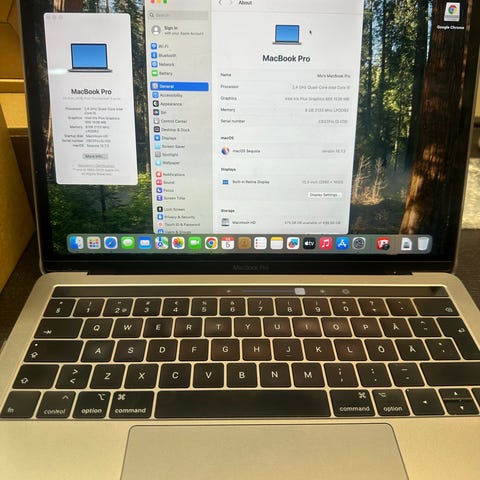 laitteessa on 2,3 GHz Intel Core i9 -prosessori, erillinen AMD Radeon Pro -näytönohjain sekä 32 Gt DDR4-muistia. Käyttöjärjestelmänä on macOS Tahoe 26.2 Runko on alumiinia ja värinä harmaa (space gray -tyyppinen sävy).