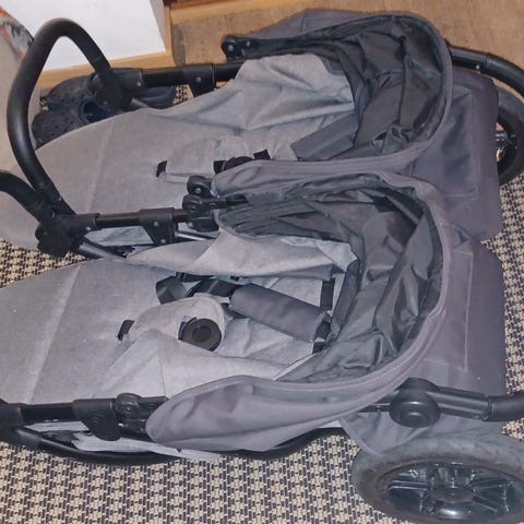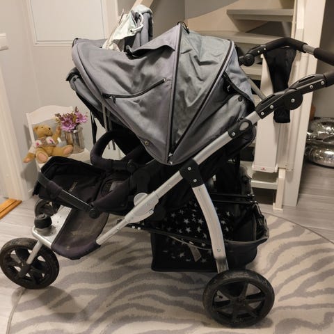 Myydään hyvät sisarusrattaat seuraavalle tarvitsevalle. Paketti sisältää kaksi ratasosaa ja yhden vaunukopan. Lisäksi molempiin ratasosiin löytyy jalkapeitteet. Rattaissa on säädettävä ohjaustanko ja ovat kevyet työnnellä. Käytönjälkiä ja kulumaa löytyy, mutta oikein toimivat kuitenkin. Suurimpina moitteina rungossa olevat jäljet (näistä kuva) ja toisen ratasosan kaari on rikki kiinnityksistään toiseltapuolelta eli ei lukitu, mutta näppärä varmasti korjaa tämän.