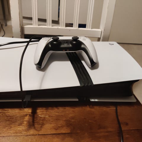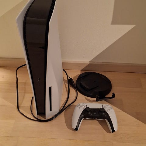 Sony PlayStation 5 pelikonsoli valkoinen. Konsoli sopii nykypolven konsolipeleihin ja viihteen suoratoistoon. Mukana kuvissa näkyvä valkoinen ohjain. Konsolissa useita liitäntöjä näytölle, verkkokaapelille ja oheislaitteille. Tarkemmat tiedot, kuten tallennustilan koko ja mahdolliset lisävarusteet, kannattaa varmistaa myyjältä.