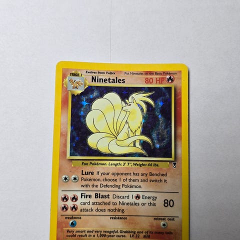 Pokémon Ninetales keräilykortti holografinen. Kortti esittää Ninetales-hahmoa ja siinä on kiiltävä holografinen kuva. Sopii Pokémon-korttikokoelmaan tai pelaamiseen Pokémon Trading Card Game -pelissä. Kortin kieli ja painosvuosi eivät käy ilmi kuvasta, joten ne on hyvä tarkistaa tarvittaessa erikseen.