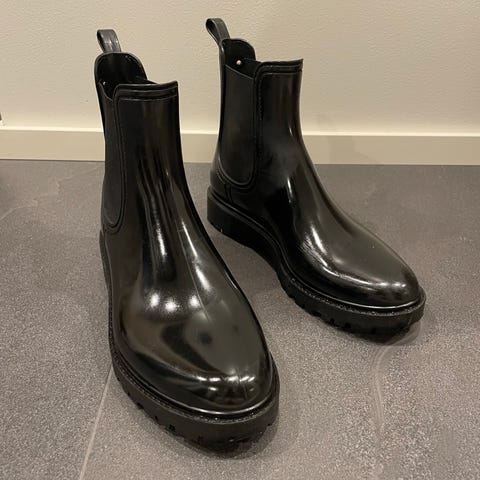 Uudenveroiset kumiteräsaappaat leveällä lestillä. Narut edessä, jolla voi säätää vartta. Reilua kokoa.